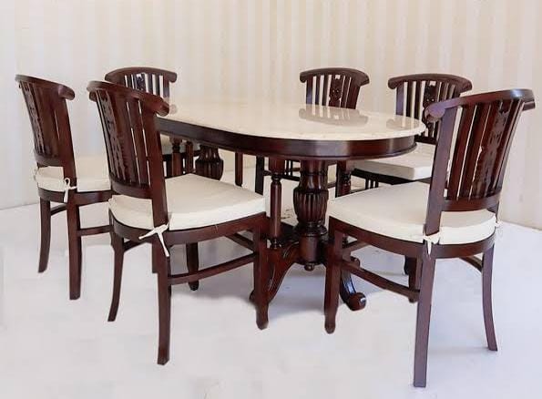 Set Meja Makan Marmer Oval whita Carara 160×90
